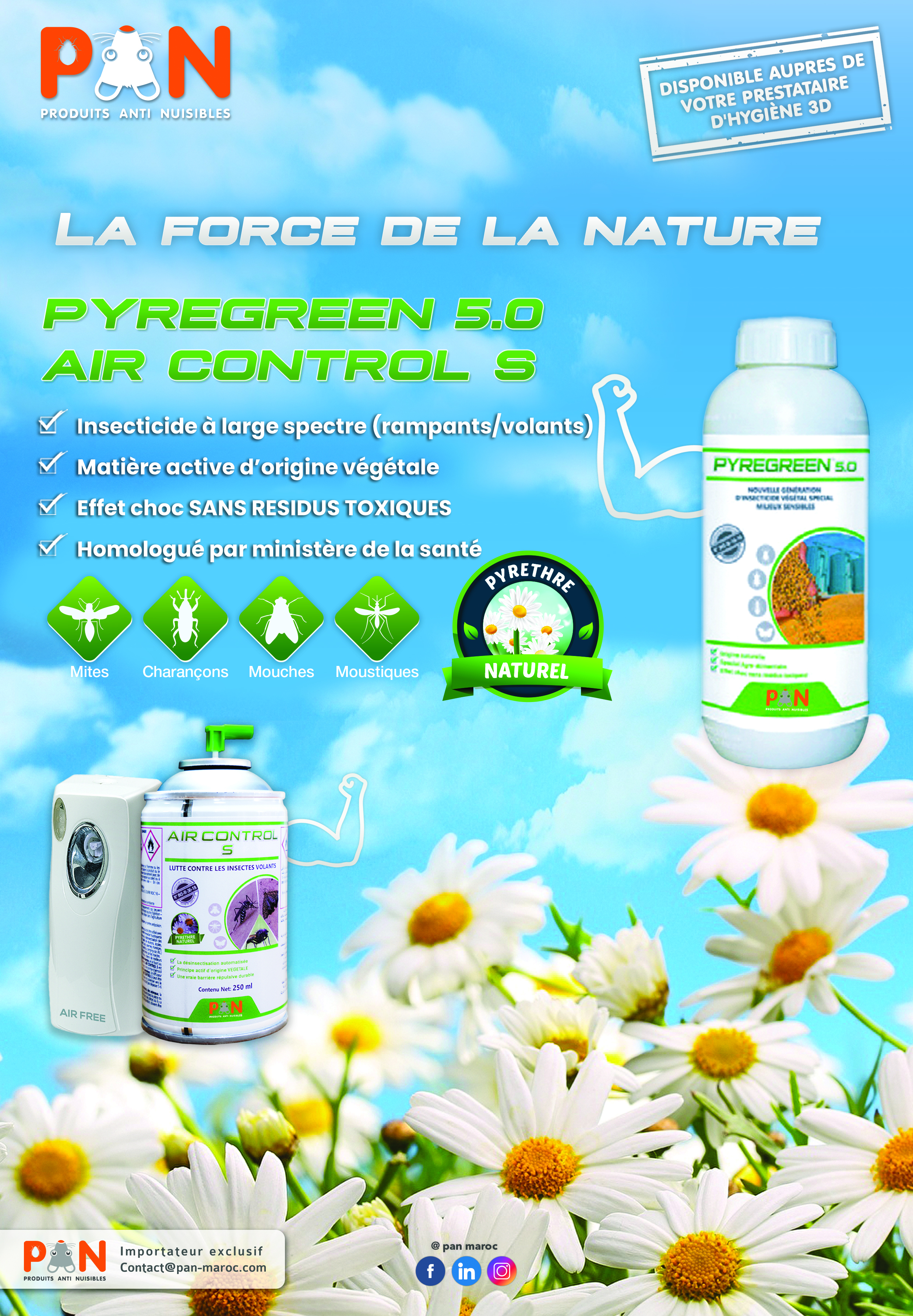 AIR CONTROL S contient une matière active d’origine naturelle (le pyrèthre) qui élimine er repousse rapidement les insectes volants dans tous types de locaux (villas, bureau, restaurant, cafés, commerces..)